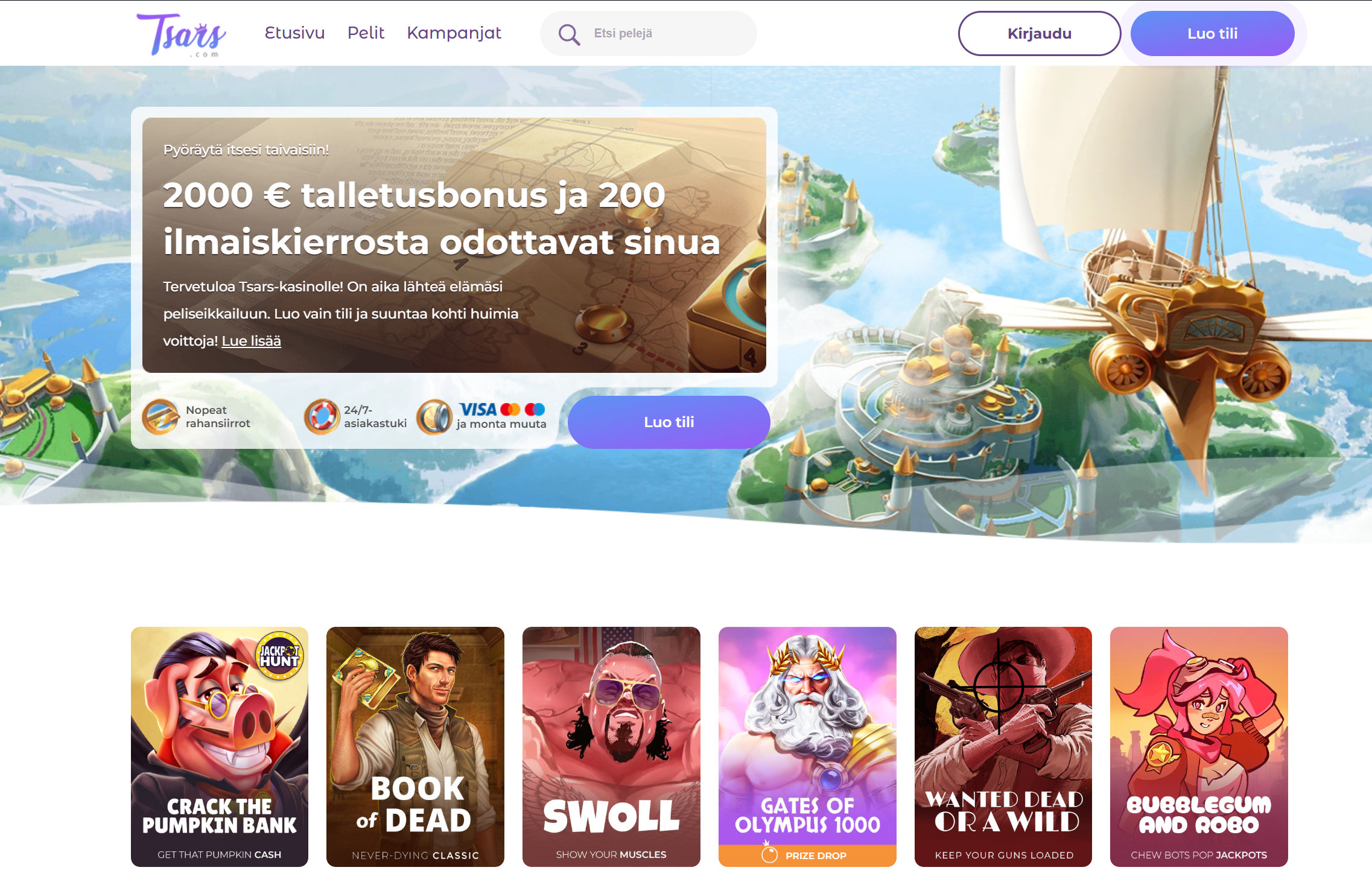 Tsars Casino kutsuu pelaajat mukaan seikkailuun, joka yhdistää historian mystiikan ja modernin kasinopelaamisen. Tämä arvostelu käy läpi Tsars Casinon keskeiset ominaisuudet, tarjoten rehellisen katsauksen kasinon palveluihin ja siihen, mitä suomalaiset pelaajat voivat odottaa liittyessään.